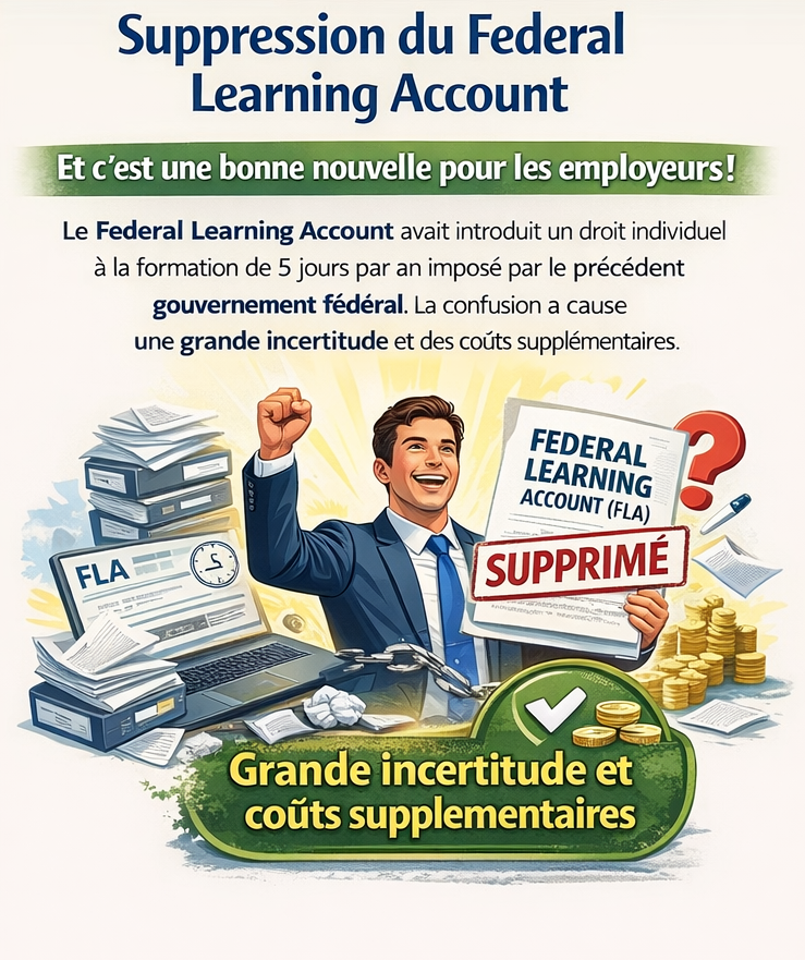 16/12/2025 - Suppression du Federal Learning Account (FLA) Et c'est une bonne nouvelle pour les employeurs! plus d'info